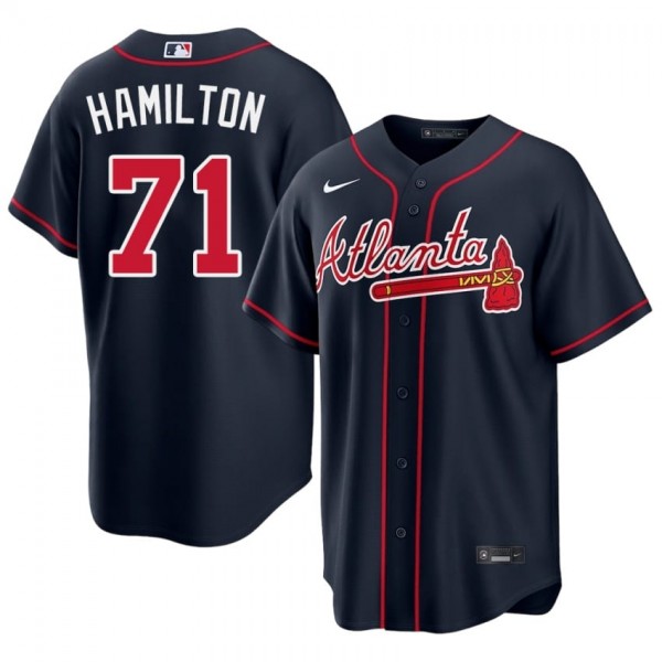 • Men ATL Bravos Ian Hamilton #71 Navy Embroidery Jersey