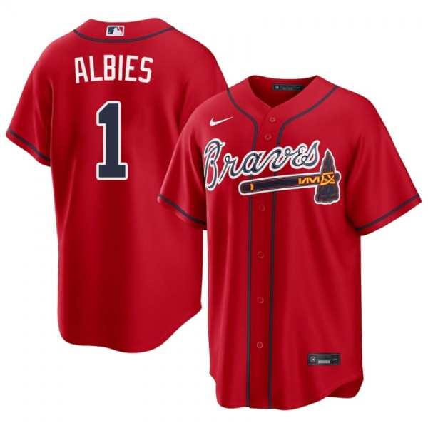 • Mens ATL Ozzie Albies #1 Red Replica Jerseys