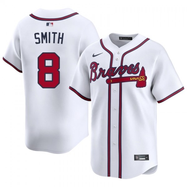 • Mens Bravos Dominic Smith #8 White Limited Jerseys
