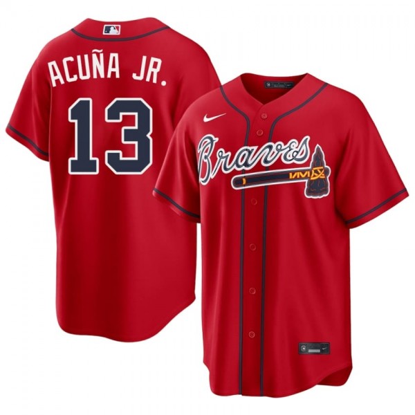 • Mens Bravos Ronald Acuna Jr. #13 Red Embroidery Jerseys