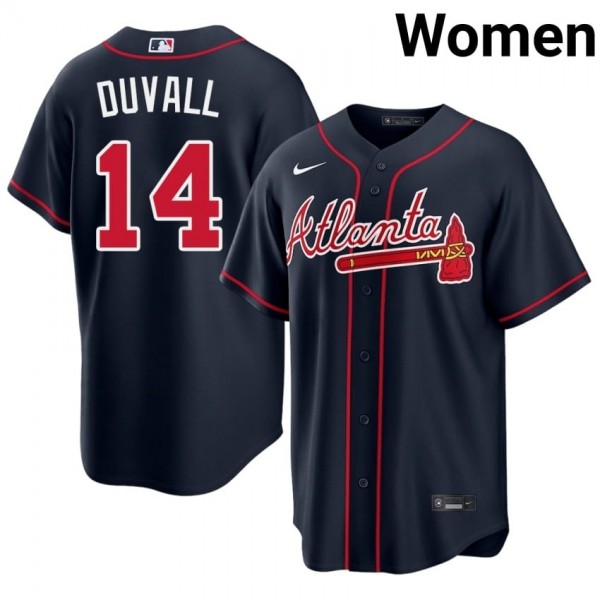 Women Bravos Adam Duvall #14 Navy Stitched Jersey 738780-311