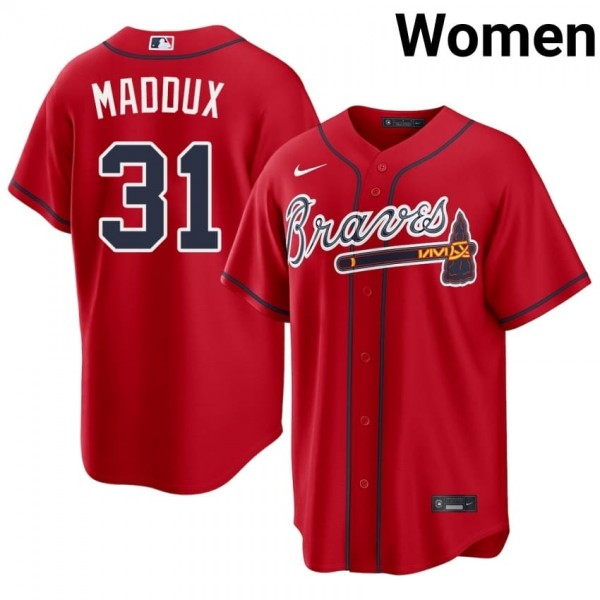 Women Bravos Greg Maddux #31 Red Official Jerseys 616697-862
