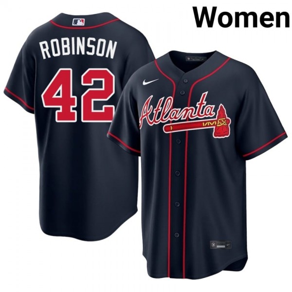 Women Bravos Jackie Robinson #42 Navy Authentic Jersey 239630-943