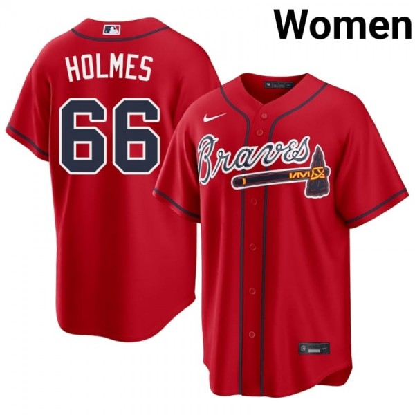 • Women's ATL Braves Grant Holmes #66 Red Embroidery Jersey