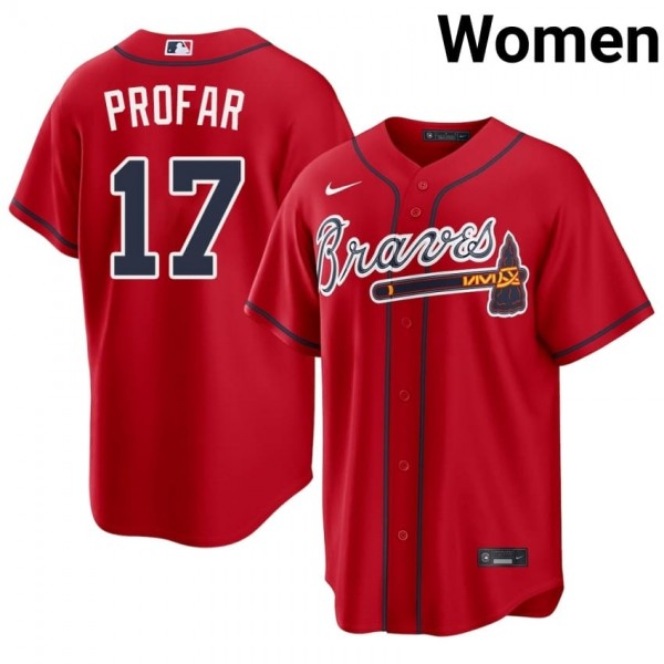 Women's ATL Braves Jurickson Profar #17 Red Limited Jersey 188388-255