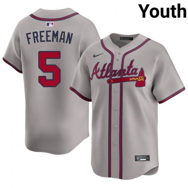 • Youth Atlanta Bravos Freddie Freeman #5 Gray MLB Jersey
