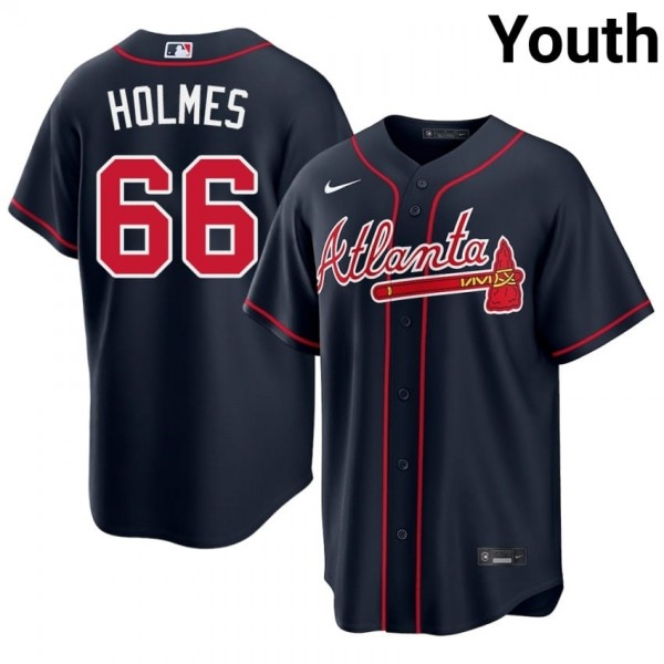 • Youth Atlanta Bravos Grant Holmes #66 Navy Official Jersey