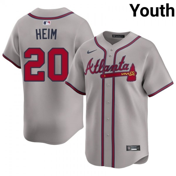 • Youth Atlanta Bravos Jonah Heim #20 Gray Game Jerseys