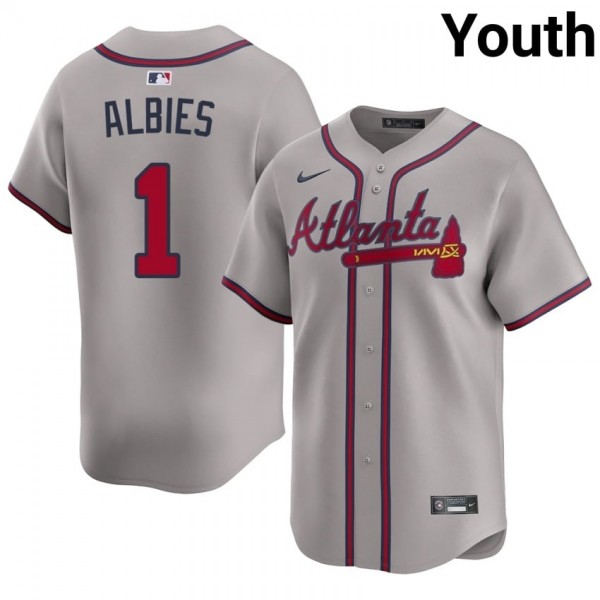 • Youth Braves Country Ozzie Albies #1 Gray Authentic Jerseys