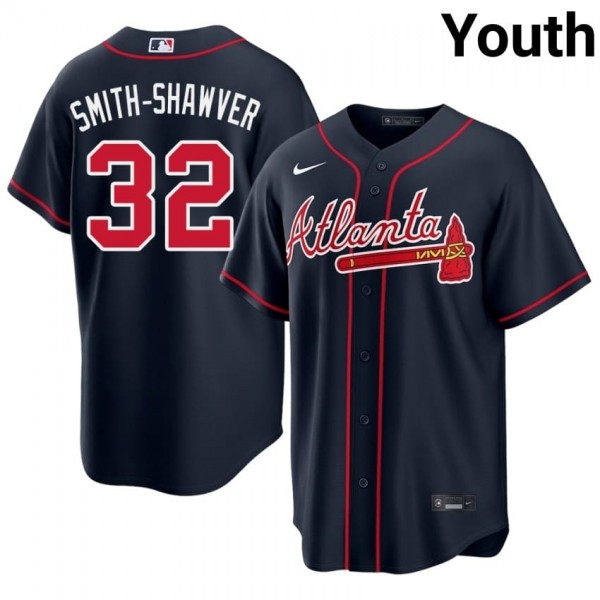 • Youth Bravos AJ Smith-Shawver #32 Navy Authentic Jerseys